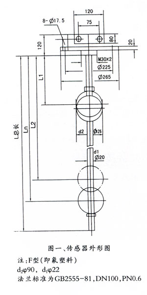 4、由于受鐵路運(yùn)輸?shù)南拗疲笥?m以上采取分段裝箱,安裝時(shí)由用戶自行焊接,焊接后需將焊縫銼平正,并做好水壓試驗(yàn)(壓力小于0.6MPa)確定不漏方可合使用,F(xiàn)型的傳感器還須將隨箱來的氟塑料套管套上并固定;或用戶自行解決運(yùn)輸問題。 |