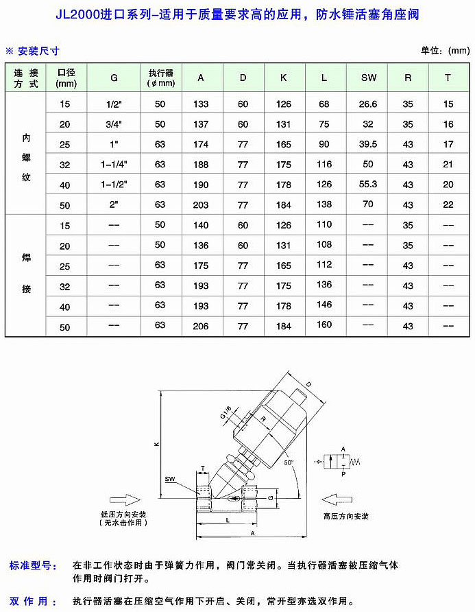2000單作用角座閥