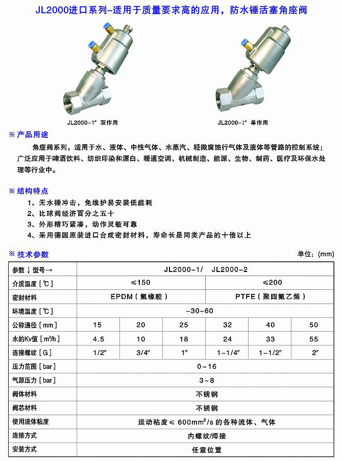 EG JL2000進(jìn)口系列雙作用角座閥